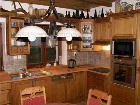 Půdní kuchyně má půvab starých časů, lesk dodaly moderní spotřebiče
